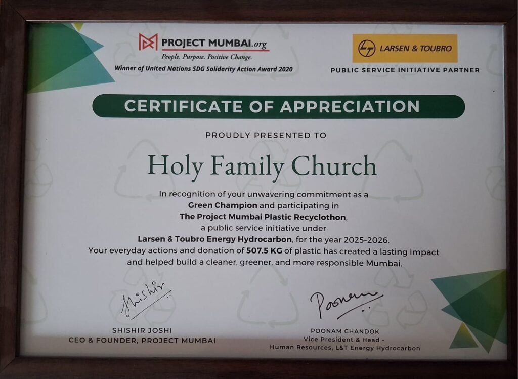 We are thrilled to announce that Holy Family Church has been awarded a Certificate of Appreciation by Project Mumbai and Larsen & Toubro (L&T) for our dedicated participation in the…